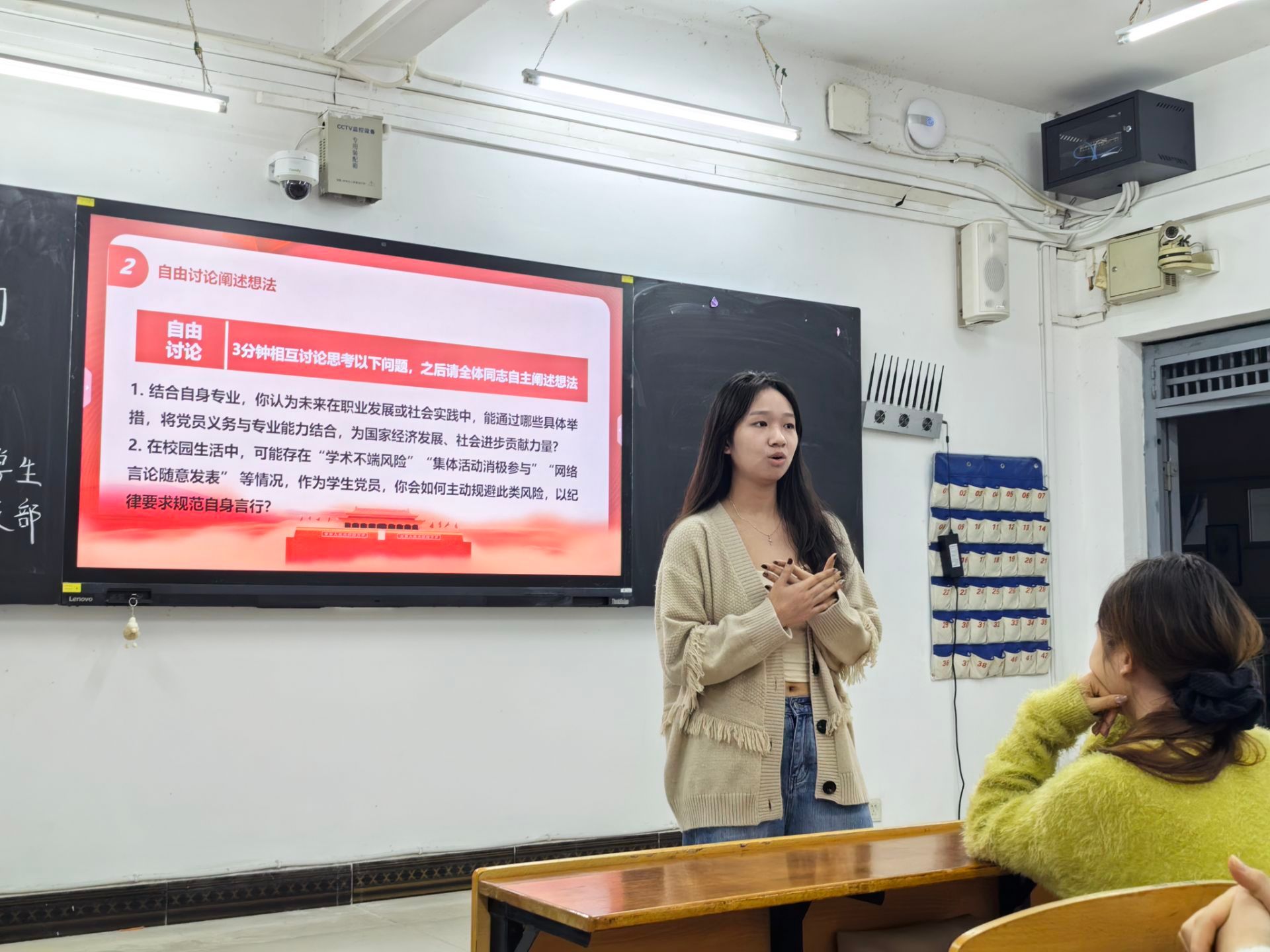 活动伊始,全体成员起立奏唱国歌,在庄严的氛围中拉开活动序幕。读书分享环节,支部成员围绕党章总纲相关内容,结合自身学习体会交流感悟,深化对理论知识的理解。党的理论知识问答环节,现场氛围热烈,成员们积极应答,精准回应关于党的行动指南、党员首要义务、社会主义建设根本任务等核心问题,巩固了学习成果。随后,大家共同观看《党员义务》与《九三阅兵高燃瞬间全收录!走进这场跨越时空的对话,这盛世如您所愿》两部视频,直观感受党员义务的实践内涵与革命先辈的奋斗精神。