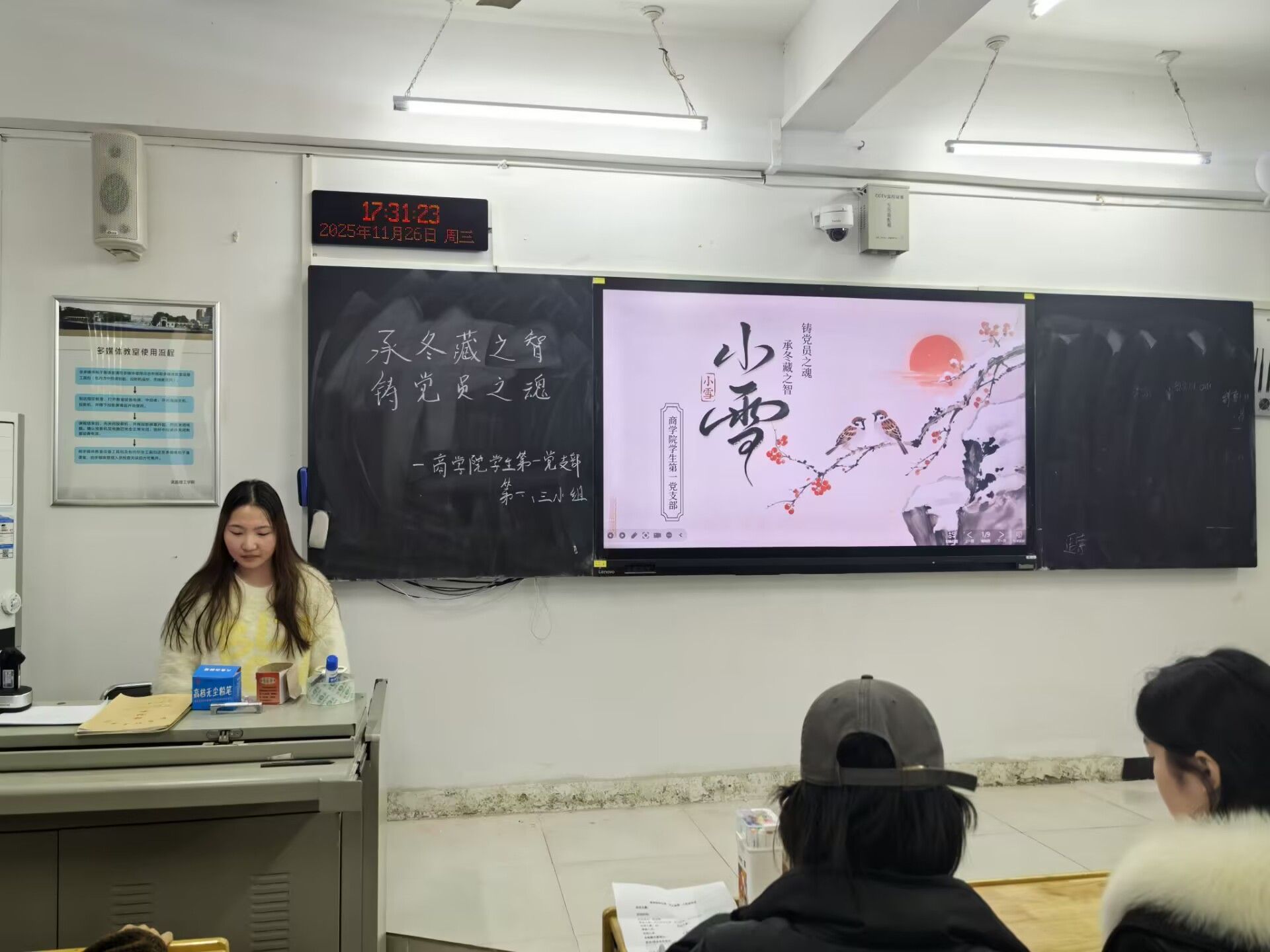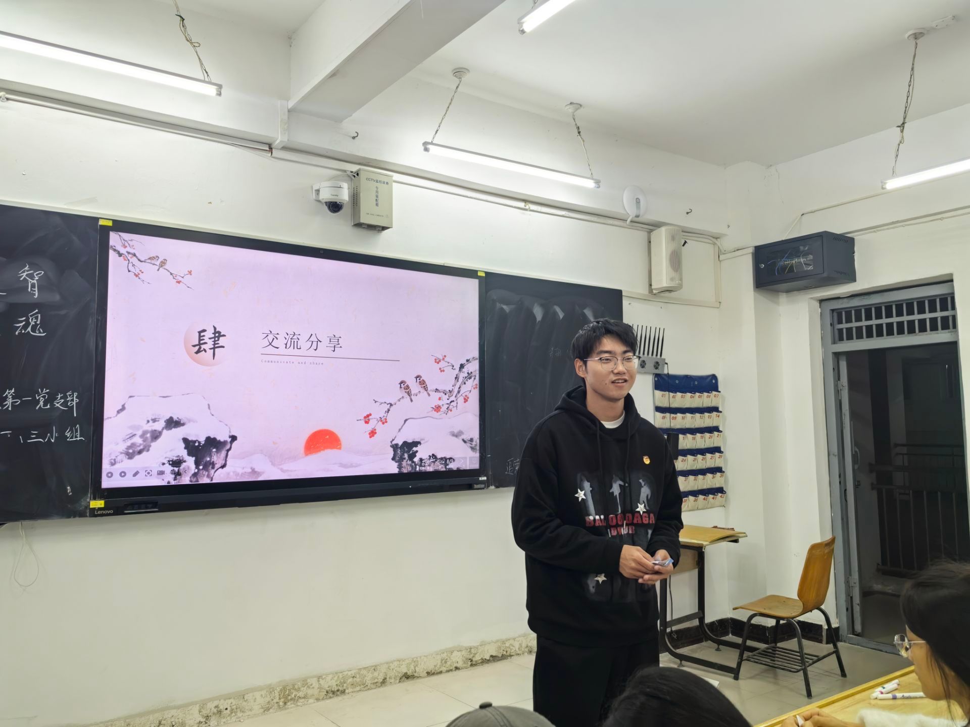 (通讯员 杨光 报道)2025年11月20日下午,商学院学生第一党支部在605教室开展了以“深学全会精神勇担时代使命”为主题的党日活动。活动旨在深入学习贯彻党的二十届四中全会精神,引导支部党员同志深刻领会全会的重要意义,将个人理想融入国家发展大局,为全体同志打造了一场深入提高政治素养的盛宴。本次由支部书记张思晨同志主持。