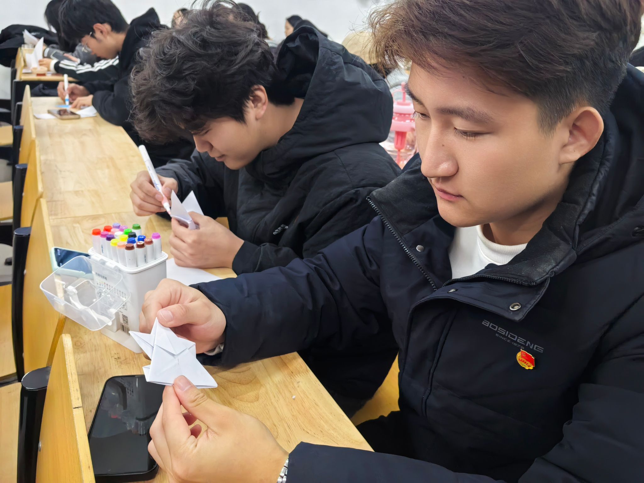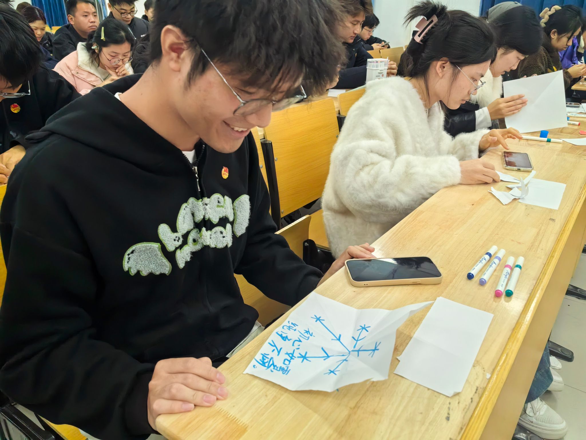 在张思晨同志的组织下,活动进入“巧手折雪映初心” 实践环节,活动氛围达到高潮。同志们领取白纸、彩笔等材料,精心制作“雪花”“雪人”等小雪代表性元素。手工过程中,同志们细心构思、认真制作,通过实践加深对节气文化的理解。手工完成后,同志们依次展示作品并围绕小雪 “冬藏蓄力” 的节气寓意,结合长征精神中红军战士不畏艰险、坚韧不拔的品格,深入交流对责任意识与奋斗精神的真切体会。