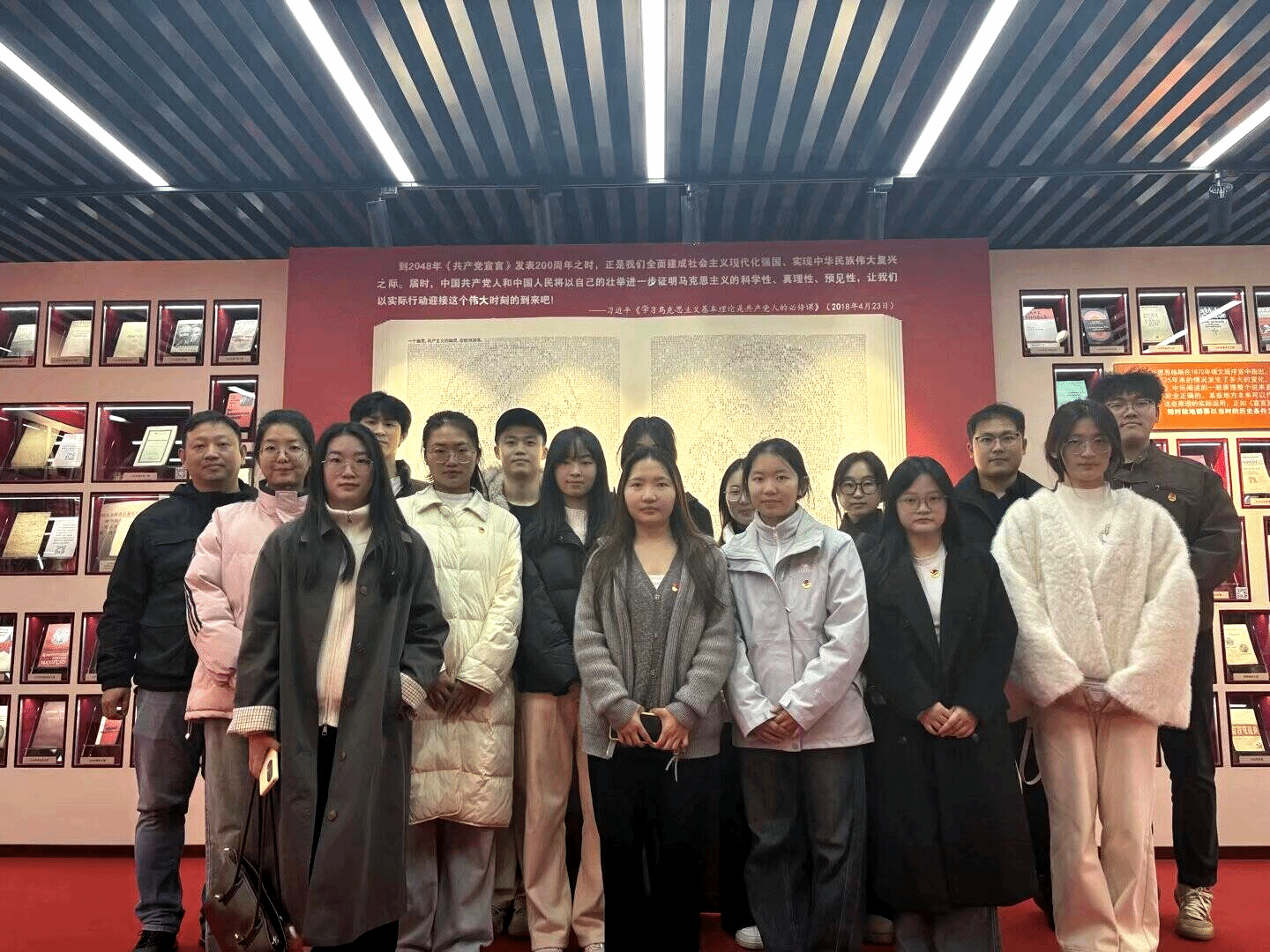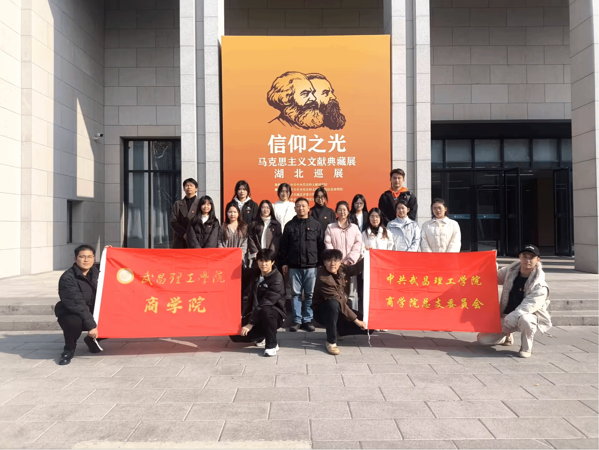 为深入贯彻落实党的二十届四中全会精神和习近平总书记重要指示精神,按照湖北省委教育工委、湖北省委党史研究室下发的《关于组织参观“信仰之光——马克思主义文献典藏展”湖北巡展的通知》的要求,根据学校党委的具体部署安排。2025年12月8日,武昌理工学院商学院党总支组织党支部师生代表20名同志来到华中师范大学文科科研楼,参观“信仰之光——马克思主义文献典藏展”湖北巡展。