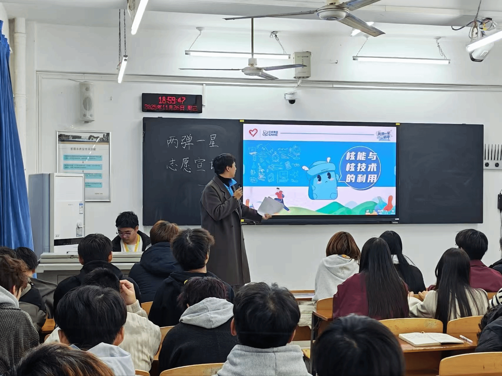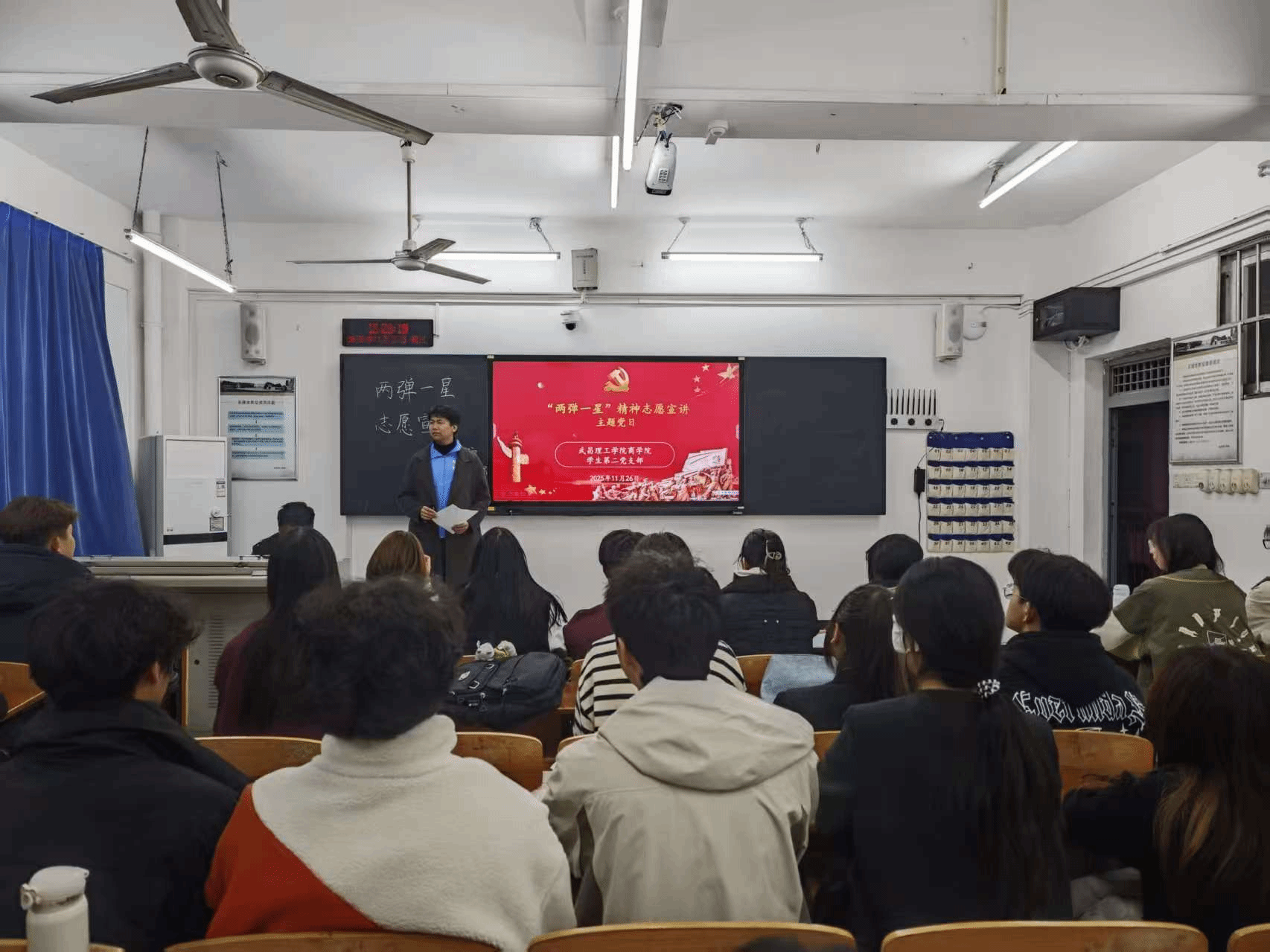 为深入学习贯彻党的二十大精神,引导广大青年同志坚定理想信念、厚植家国情怀,2025年11月27日17:30商学院学生第二党支部在商院302教室顺利开展“传承‘两弹一星’精神,青春建功新征程”主题党日活动。