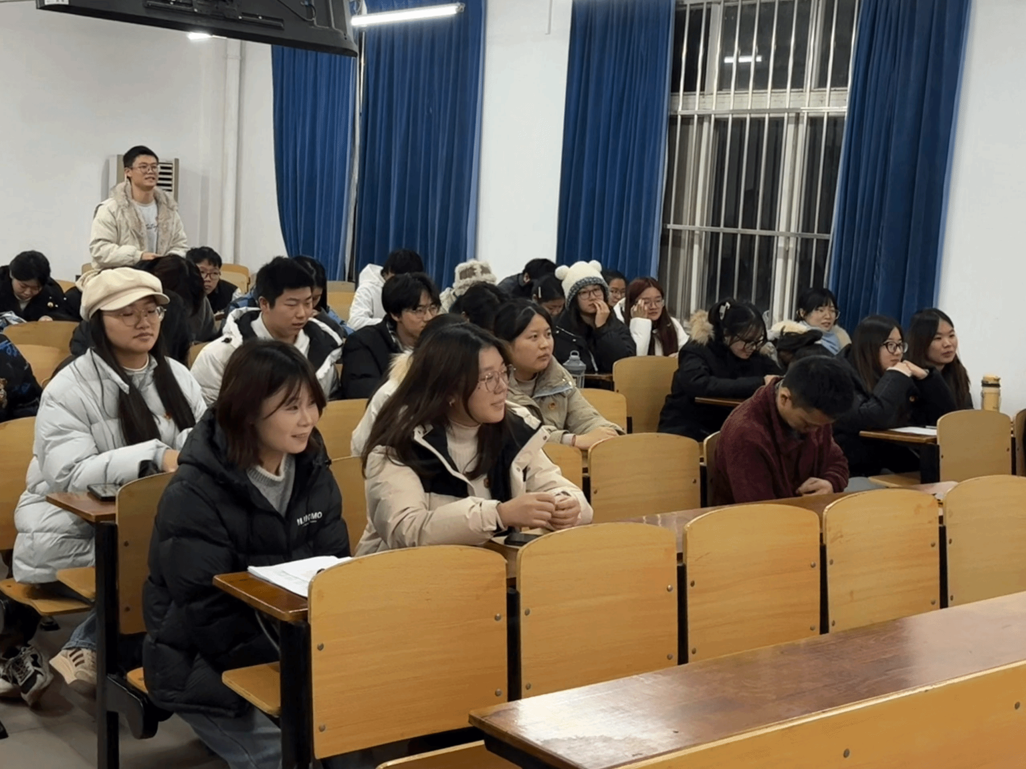 在互动交流环节,来自投资2301班的孙福翔同志向聂林慧学姐提问,就公务员考试的岗位选择、备考节奏安排以及如何在备考过程中保持良好心态等问题进行深入请教。聂林慧同志结合自身经验,从个人职业规划、阶段性目标设定等方面进行了细致解答,鼓励同学们在备考过程中坚持“以考促学、以学促行”,将公考目标与服务社会、奉献国家的初心使命有机结合。