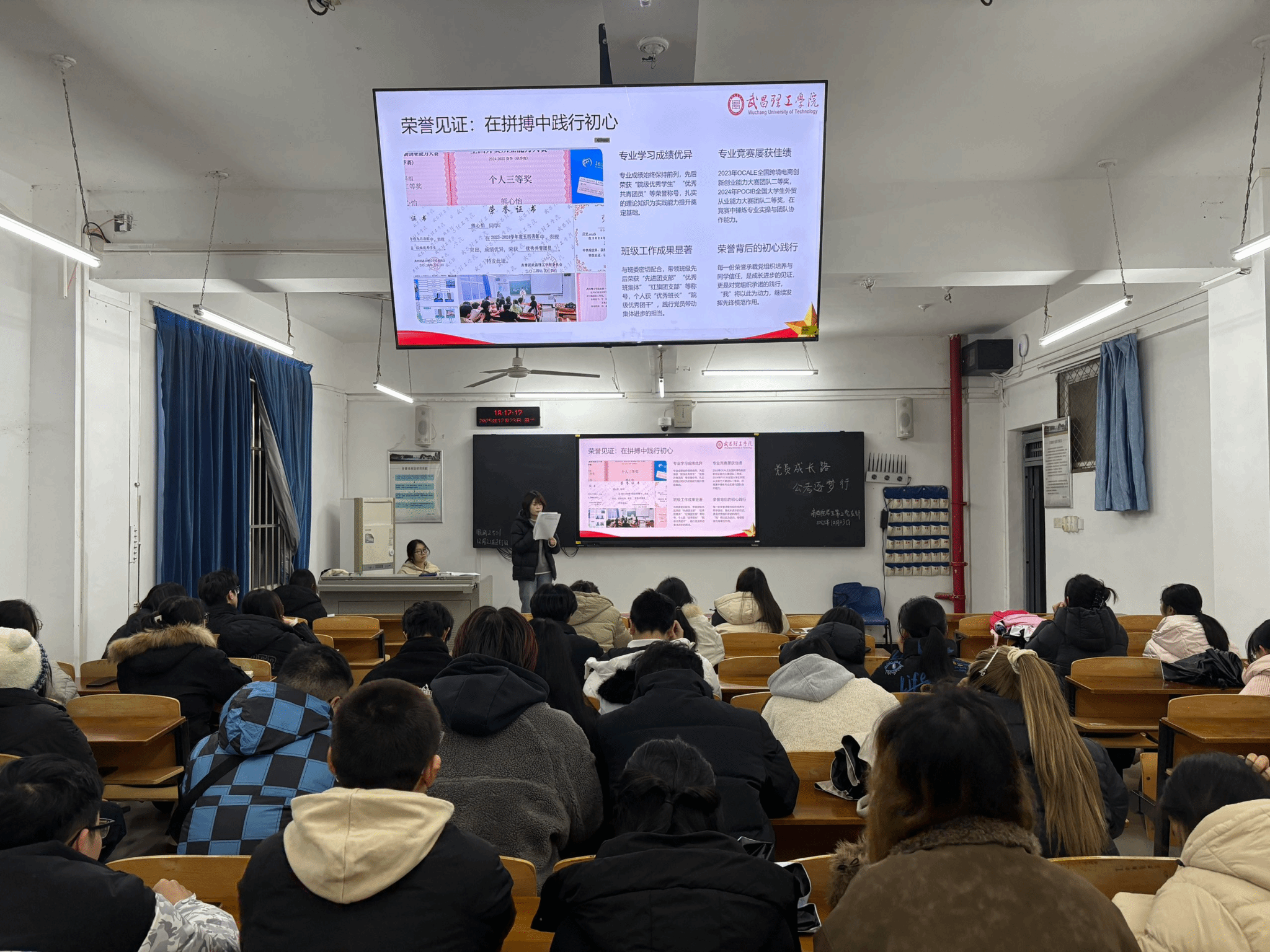 为深入推进“红火炬育人项目”走深走实,落实好“五个一”培养计划,充分发挥优秀学子的榜样引领作用,2025年12月23日下午17:30时,武昌理工学院商学院学生第三党支部在商学院302教室,开展以“党员成长路·公考逐梦行”为主题的特色宣讲活动。