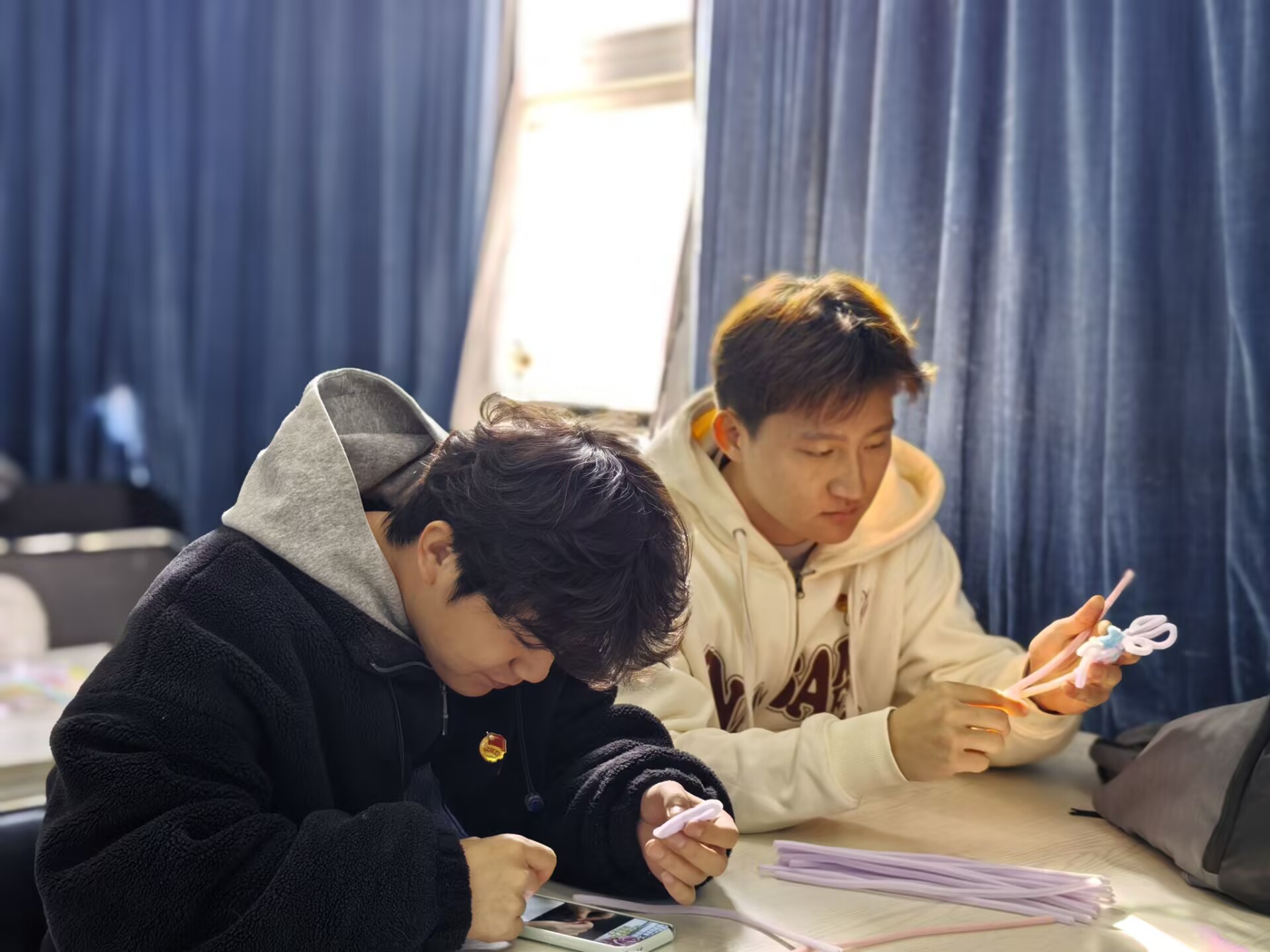 在“巧手迎新年,温情寄祝福”互动环节,现场氛围热烈而温馨。小组同志们们充分发挥创意,运用扭扭棒、胶水等工具,精心制作“饺子”“福字”等新年特色手工作品,用指尖创意勾勒新春期盼;同时,大家纷纷在贺卡上写下真挚的新年祝福,字里行间饱含对组织发展的期许、对同伴成长的祝愿。趣味十足的手工创作与温情满满的祝福传递,不仅让同志们在忙碌的学习生活中得以放松身心,更搭建起深度交流的桥梁,让大家在协作中感受团队温暖,在互动中拉近心灵距离。