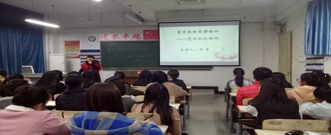 2月28日下午7时,商学院党总支联合学工第四党支部在605教室召开了第十二期院党课理论课,本次院党课参加学习的的共有近130名同志,我们有幸请到了商学院党务秘书许翠老师对党务基础知识进行讲解,扎实大家的基础理论知识。在上课的过程中,大家认真听讲,全神贯注,进一步提升了自己的理论水平和思想觉悟。