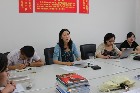 党总支副书记曾洁向检查组汇报了党务宣传方面的情况,详细介绍了各党支部在运用新媒体进行宣传教育上所取得的成绩。党务秘书兼学工第二党支部书记孙华远汇报了商学院学工党支部“旗帜·先锋·力量党员教育工程活动”的开展情况和特色支部的建设。学生党员代表向检查组建议,希望校党委能够搭建起各学院党支部及党员间的交流和学习平台、创新校党课形式和为党员科研创新提供支持。