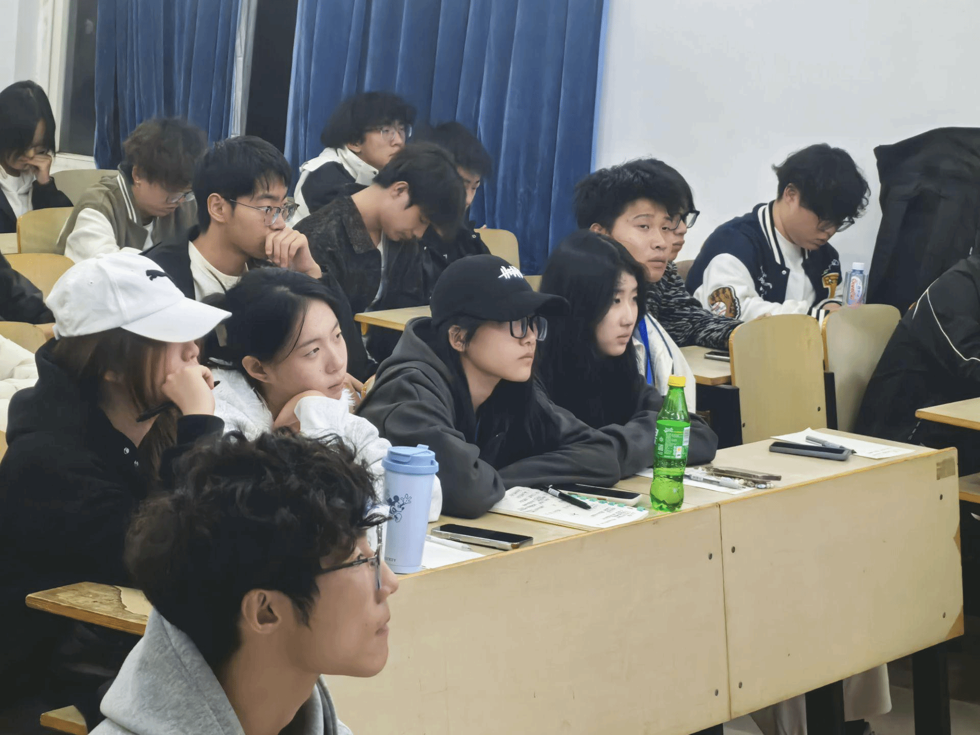 “没有突如其来的成功,只有不断努力后的丰收。”在讲解完参加实战竞赛的重要性后,李泽政同学向大家分享了参加“卓越杯”的具体准备:战略分为前期准备,中期执行和后期打磨三个阶段。同学们要选择适合自己的赛道,选择合适的队友,组建可靠的团队,做好调研,选择项目,准备计划书,并对项目进行润色打磨。李泽政同学精辟翔实的讲解点燃了观众们的热情,现场掌声一片。