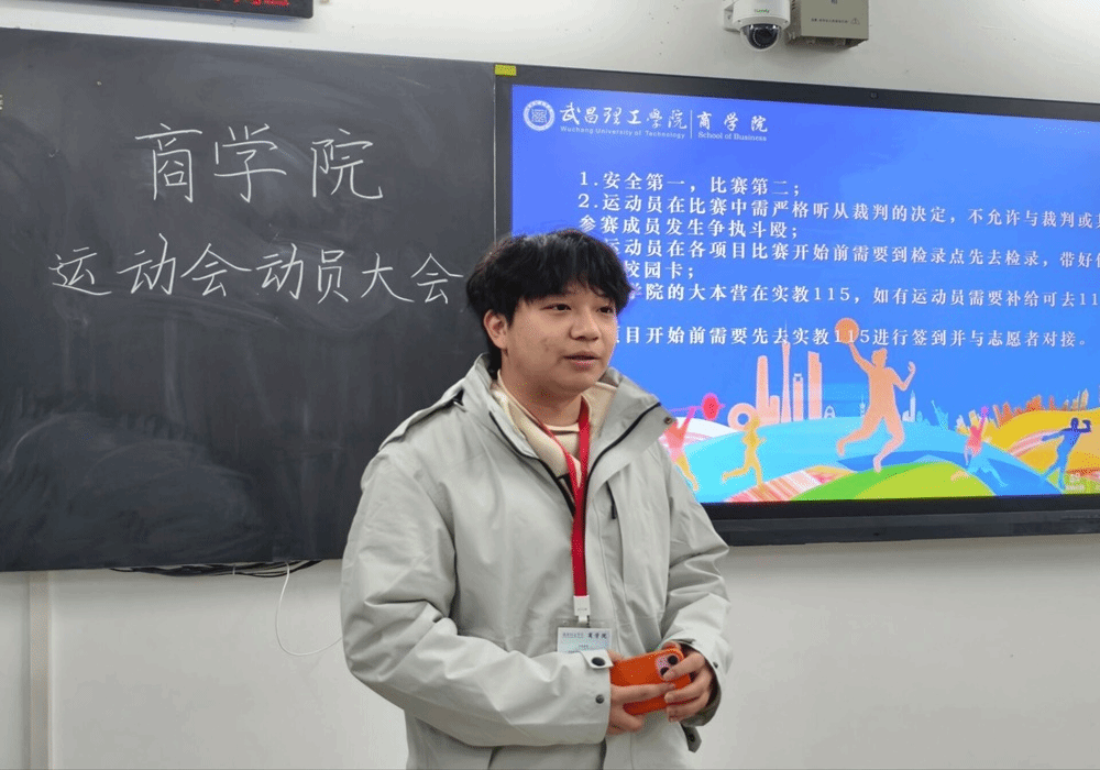 (通讯员 徐海涛 报道)为促进武昌理工学院的运动会顺利召开,确保运动员安全、有序、高效地参与校运动会,充分展现商科学子的精神风貌,武昌理工学院商学院于11月18日晚在412教室召开运动会动员大会。商学院团委书记熊文悦、团委学生副书记余俊杰以及商学院全体参赛运动员和志愿者们共同出席了此次大会。