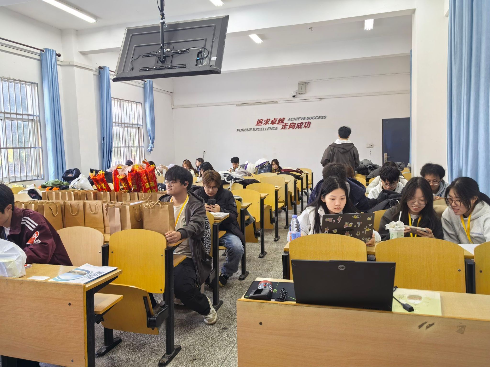运动现场设立商学院志愿者服务站点,商学院团委书记熊文悦也来到现场参与指导工作,她和志愿者们全程坚守岗位,全力保障赛事有序进行。实验教学楼115教室内备有运动员加油包,包含:饮用水、能量补给食品、应急医药箱等物资,无论是志愿者服务站点提供的用品,还是送到运动员手中的加油包,这些精心准备的物资为运动会注入温暖与力量,助力选手们在赛场上绽放光彩。