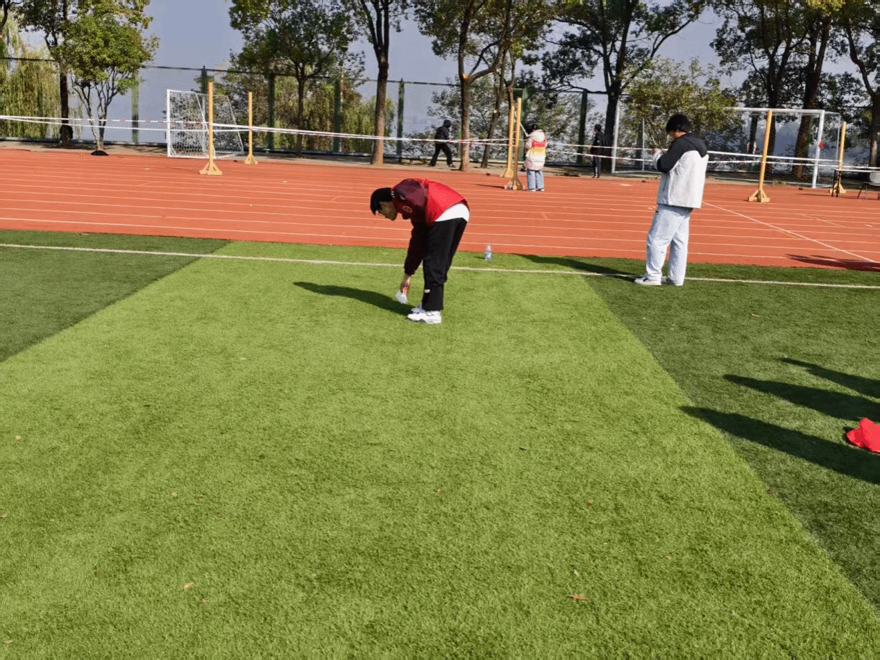 运动会的顺利进行,离不开志愿者的辛勤付出。但在服务区域外,记者捕捉到了更加动人的瞬间。来自商学院的志愿者王博文同学,他本职是负责协调志愿。在换岗休息时,他发现操场上有喝完的饮料瓶,立马便将其捡起丢进垃圾桶。这本不是他的职责范围,但他依旧自觉执行。“保持赛场环境是我们每一个人的职责,这并不需要要求,而是我们应尽的责任。”他的话语朴实无华,却道出了所有志愿者将服务精神内化于心的赤诚。