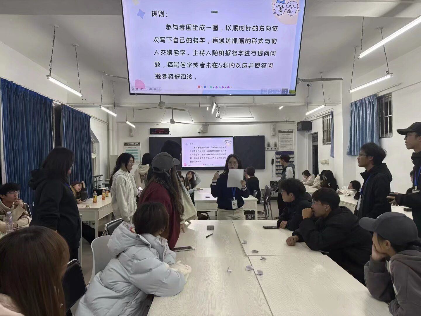 在本次活动的筹备阶段,商学院积极进行活动宣传,设计了兼具趣味性与互动性的活动流程,并精心准备各种礼品,让每一位参与者都能感受到满满的诚意与暖意。第一个环节“就不听指挥”中,学生围在主持人周围,听到指令迅速做出相反动作。参与者动作反应敏捷,现场笑声此起彼伏,紧张感在肢体互动中消解。学生干部穿梭维护秩序,确保每位参与者安全融入。
