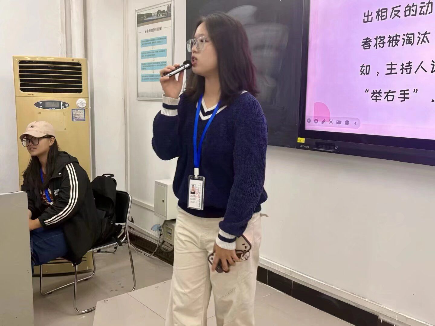 第二环节“交换名字”点燃全场热情。学生随机抽取对方名字卡后,主持人点名提问时“真名禁答”的规则引发阵阵惊呼。被点到“假名”的同学或紧张或机智应对,错误时欣然接受真心话惩罚,陌生感在身份转换中消除。随后的“谁是卧底”环节更显紧张,8人一组抽取词语卡后轮流描述,“橙子”与“橘子”的微妙差异引发激烈推理。投票淘汰时悬疑感十足,最终身份的揭晓使教室充满欢呼声