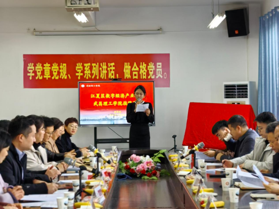 随后,校地双方分别介绍了建设基础与规划。商学院教学副院长贺霄娟系统汇报了学院为对接产业需求所做的专业优化调整,以及在高水平师资建设、跨学科课程开发、产教融合项目等方面取得的成果。江夏区数字经济联合会会长李坚在介绍区域情况时指出,江夏区数字经济发展势头强劲,其中数字文创产业已成为重要增长极,年产值规模约50亿元,带动相关就业近6000人,由此产生了对专业化、实战型人才的迫切需求,校地合作恰逢其时。