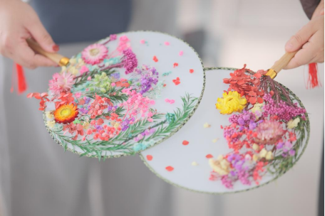 在祝娅婷主任的简要介绍与引导下,女教职工们纷纷执扇拈花,巧手创作。大家或精心构思布局,或彼此交流心得,在素面团扇上点缀各式永生干花,一幅幅清雅别致的图案渐次呈现。现场氛围轻松融洽,欢声笑语不断。制作间隙,商学院还准备了精美茶歇,老师们品尝甜点、分享作品,并互相拍摄留念,在互动中进一步放松身心、加深情谊。