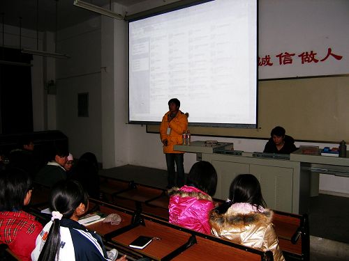 19日晚7点,我院大一150多名寝室长聚集在文法学院404教室,参加第一次商院09级寝室长培训大会。