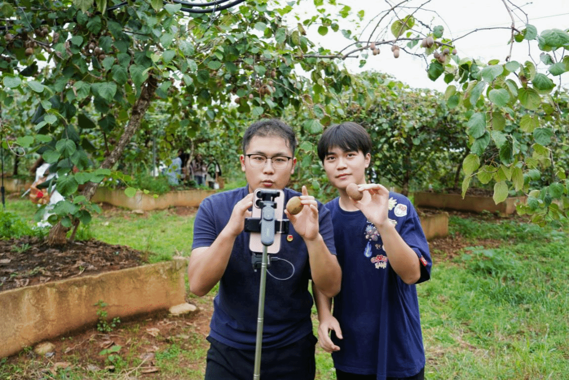 下午活动进入直播助农实战环节,团队分为直播间与猕猴桃种植园两组同步开展直播。直播间内,主播们详细介绍了未来家园猕猴桃的种植技术、营养价值及口感特点;种植园里,商学院学子走进果园,通过实景拍摄向观众展示果实生长环境,增强了产品的公信力。高校师生与农业企业代表密切配合,累计吸引数千名观众在线观看,有效提升了江夏农产品的品牌知名度。
