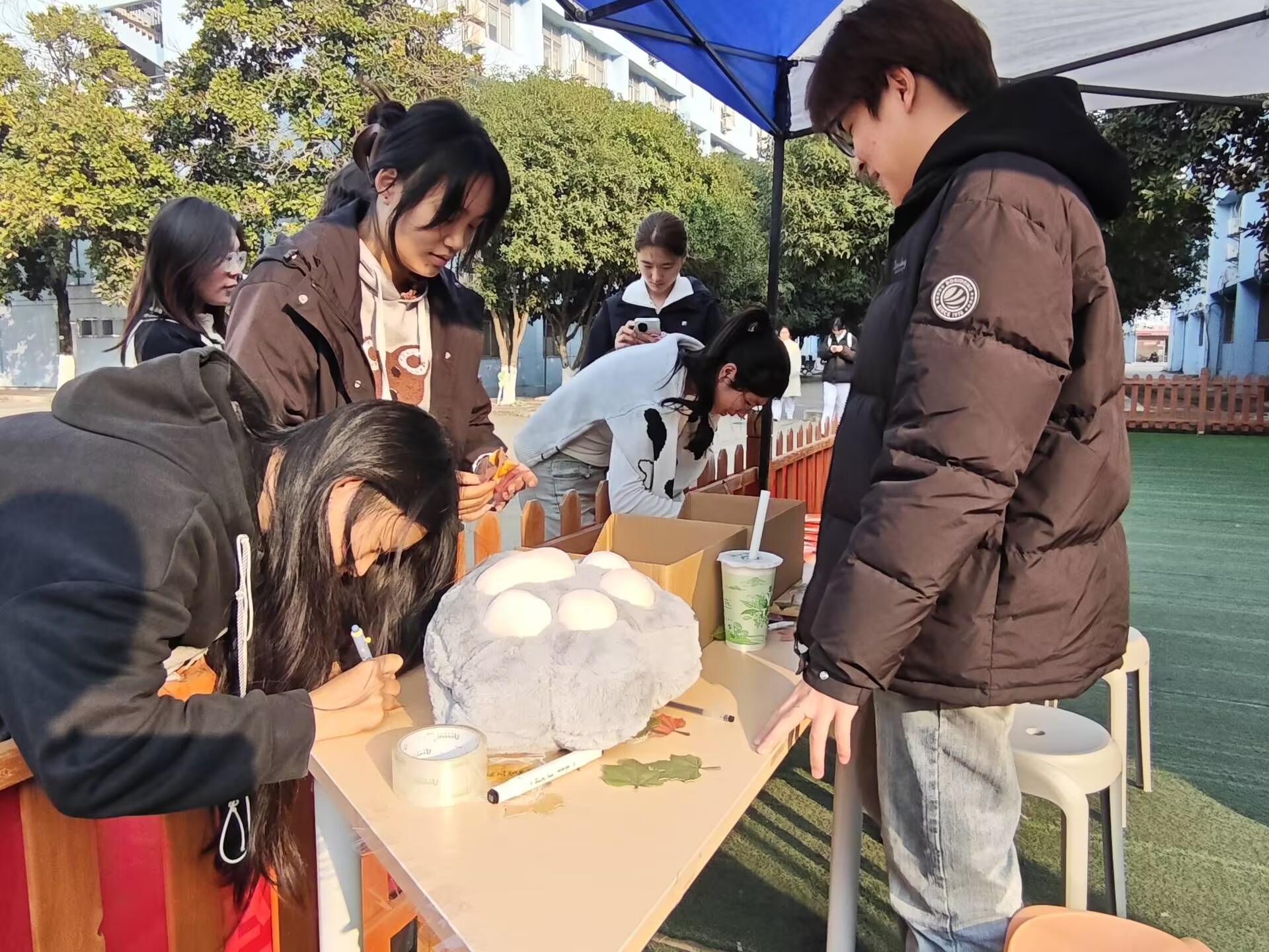 活动过程中,同学们将斑斓的彩墨晕染在叶脉之间,让落叶化作小巧的风景画,或是用马克笔勾勒出可爱的卡通形象,搭配上俏皮的文字,让普通的叶片变成了独一无二的纪念品。大家围在一起分享创作思路,互相欣赏彼此的作品,时不时传来欢笑声。有同学表示,这样的活动既有趣又治愈,能让我们在忙碌的学习生活中,静下心来感受自然之美和创作的乐趣,同时也深化了对环保这一理念的理解。