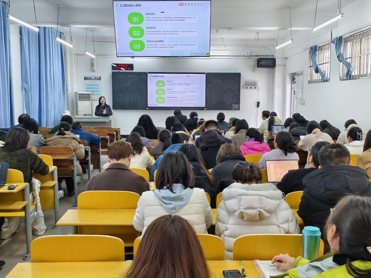 (通讯员 徐海涛 报道)为深化“全员育人、全程育人、全方位育人”工作格局,切实提升教职工对学生心理危机的早期识别与科学应对能力,12月29日下午,武昌理工学院商学院在605教室举办“洞察心灵信号,筑牢育人防线”心理危机识别能力专项培训。学院全体教职工共同参加本次培训,学生工作处心理健康教育中心专家孙华远老师担任主讲。