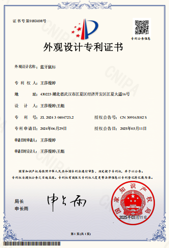 18 | 商学院 | 王莎熳婷 | 蓝牙鼠标 | 外观设计专利 | 2025-03-11 | 是 |