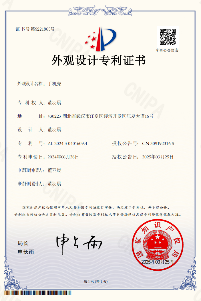 15 | 商学院 | 董羽晨 | 手机壳 | 外观设计专利 | 2025-03-25 | 是 |
