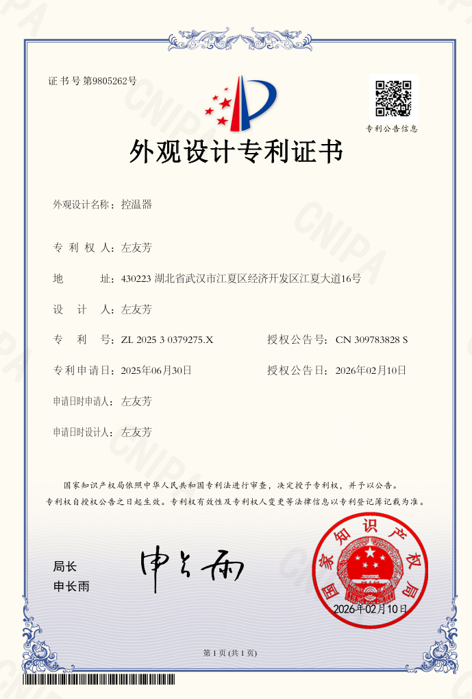 1 | 商学院 | 左友芳 | 控温器 | 外观设计专利 | 2026-02-10 | 是 |